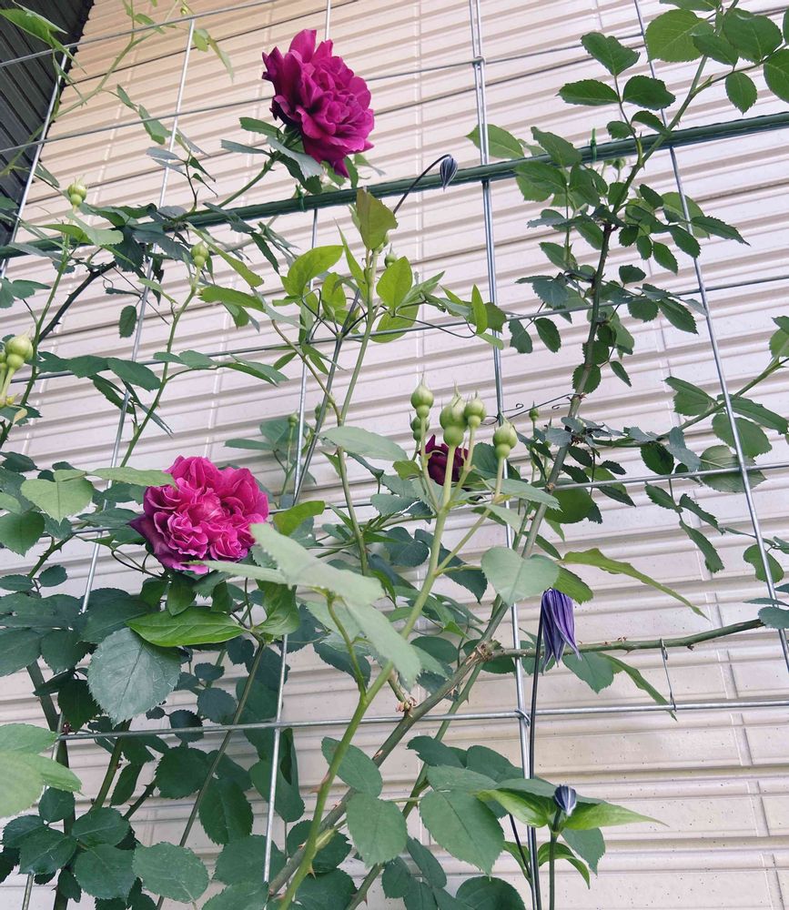 蕾がたくさんのオデュッセイア🩷香りにも癒されます😌少しずつ開花中。クレマチスとのコラボも試みてます。今後が楽しみです😊