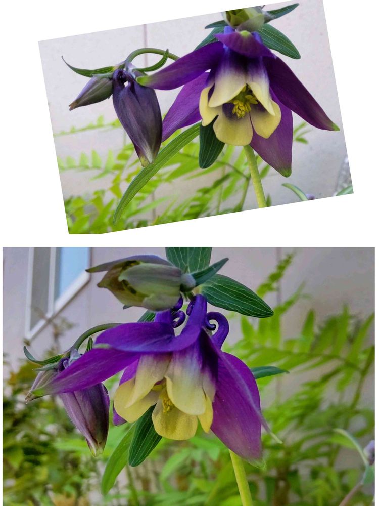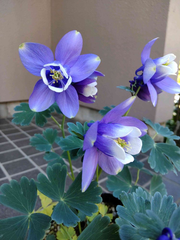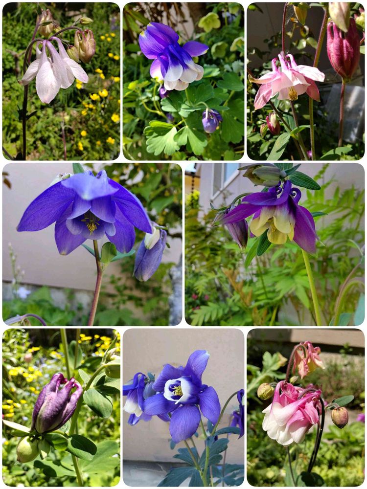 今朝の庭のオダマキです。