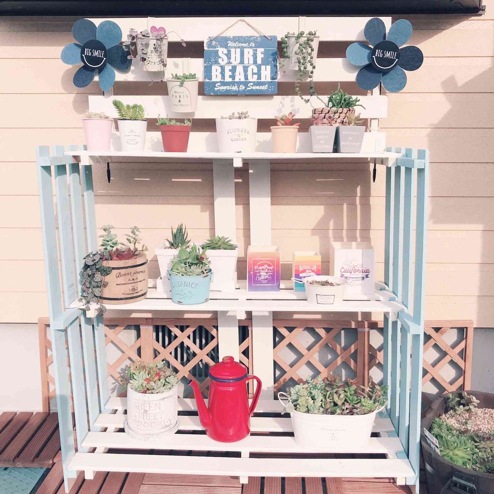 狭いベランダで、邪魔にならず、計算しつくされた風通しや日当りで使える(←ここ大事)棚、計画中✨