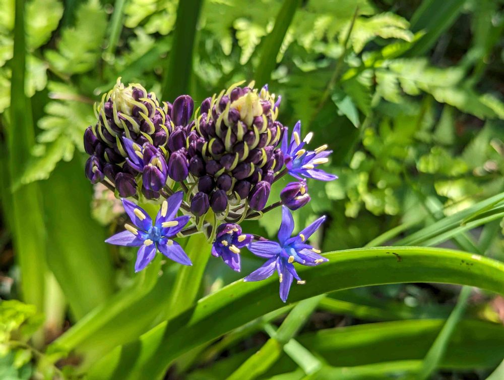 シラー・ペルビアナ、紫色と白色が、咲き始めました。