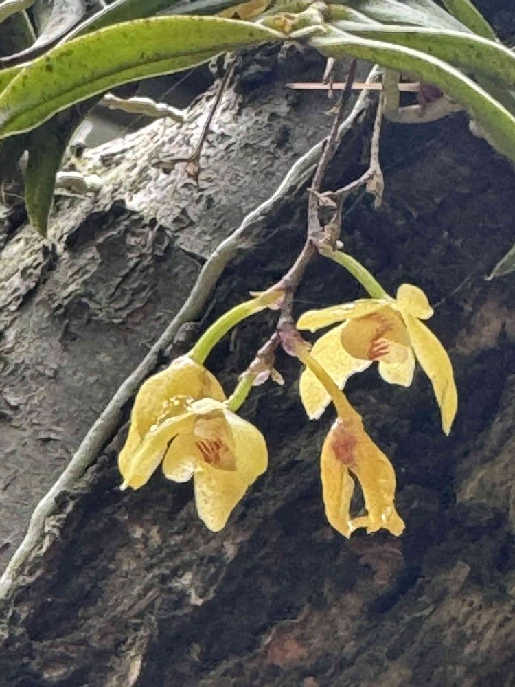 カヤラン私も庭の梅の木に括り付けてます。 上手く着生してくれるといいなぁと思ってます🤗 小さな蘭の花。でも立派に蘭の花ですから感動しちゃいます💓🎶