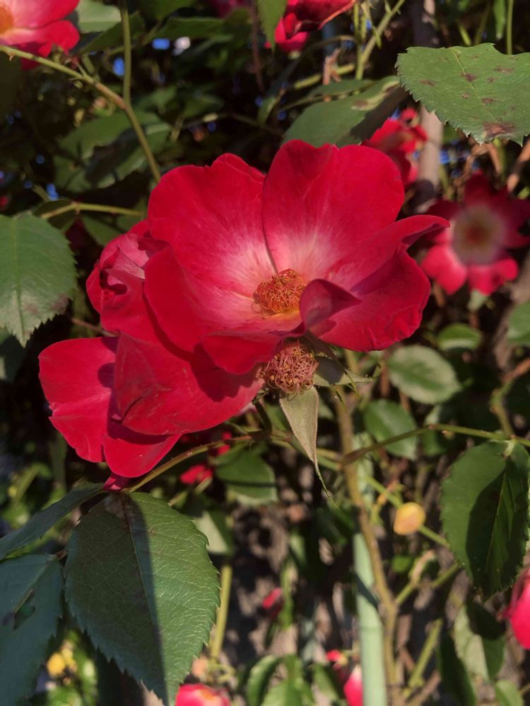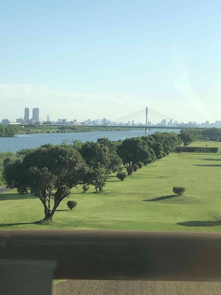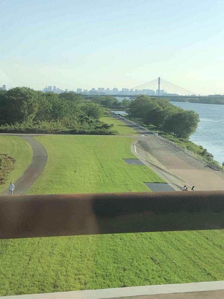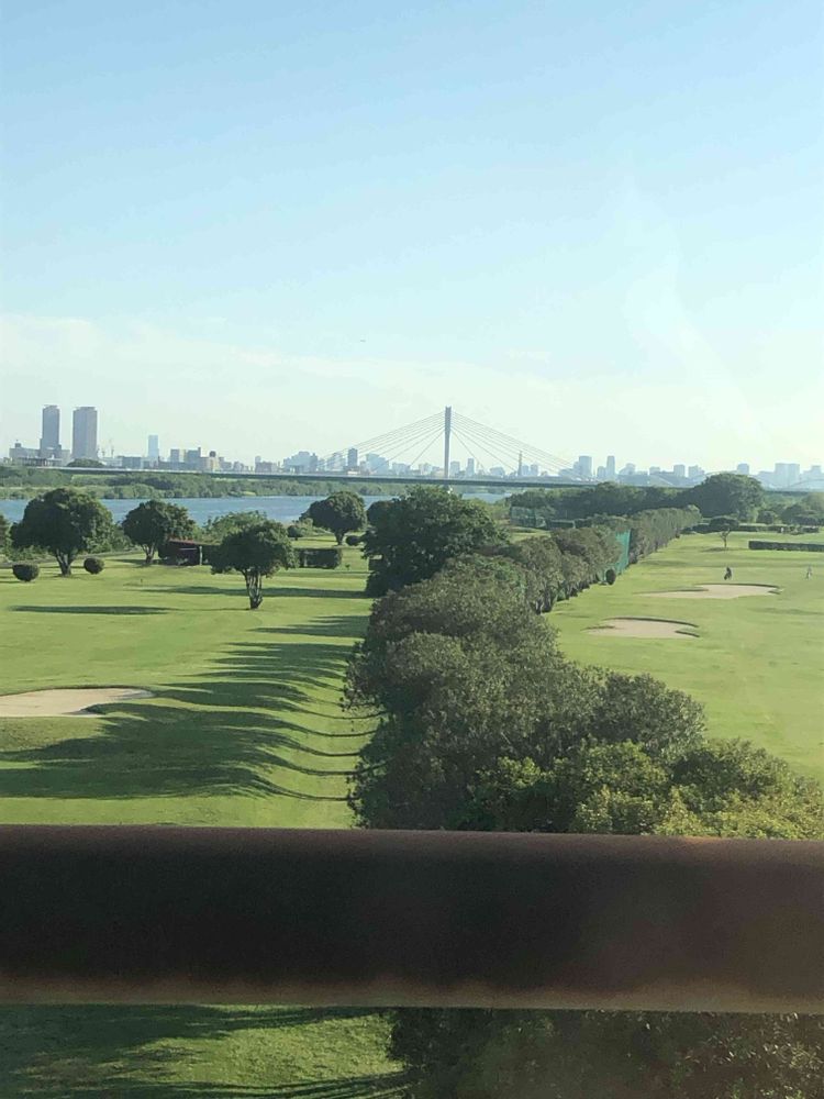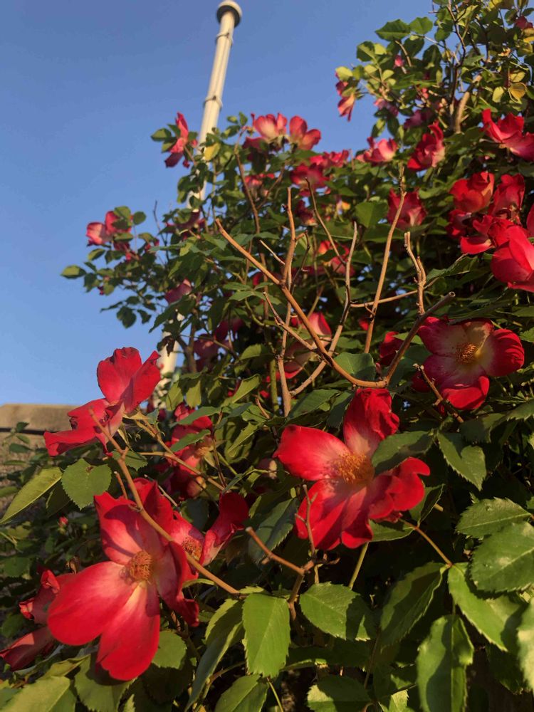 今日はお天気良く、赤いバラ「コクテール」と淀川河川敷のゴルフコースをパチリ!📸♥️🍹🌿⛳️🏌️♂️🤗🌞✌️