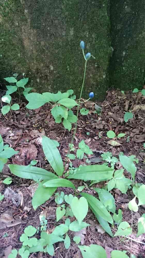 春には白くて小さなユリに似た花を付けるのが、夏にはしっかりと首を伸ばして濃藍の種を付けてました。来年は増えてますかね。