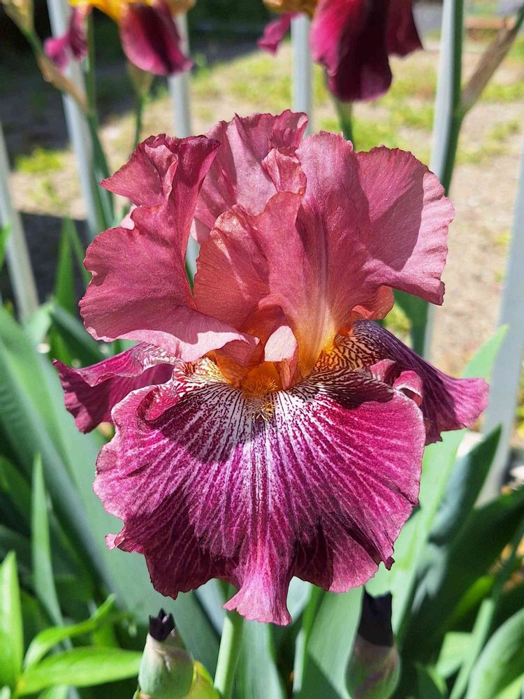 バックに写っている、フリルのない似た色のジャーマンアイリスは、よく増えます。🎶
