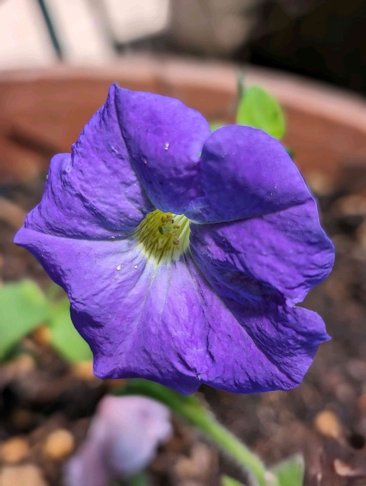 このペチュニア、もっと青い花です。