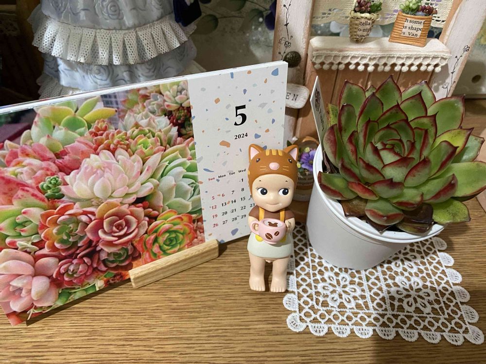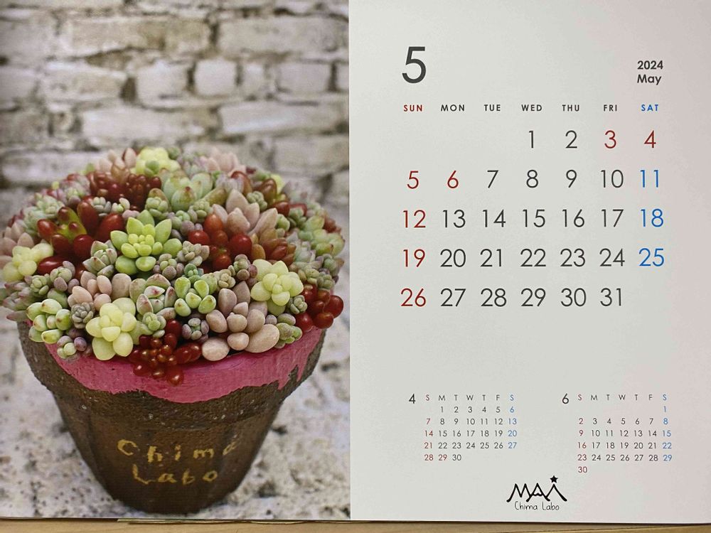 今月のカレンダーもお馴染みのメンバーさんとファイヤーフライの可憐な多肉さんで宜しくお願いします☺️💕ゴールデンウィークも後半に‥久しぶりに家族揃って(➕孫2人)賑やかに連休を過ごしてます👍