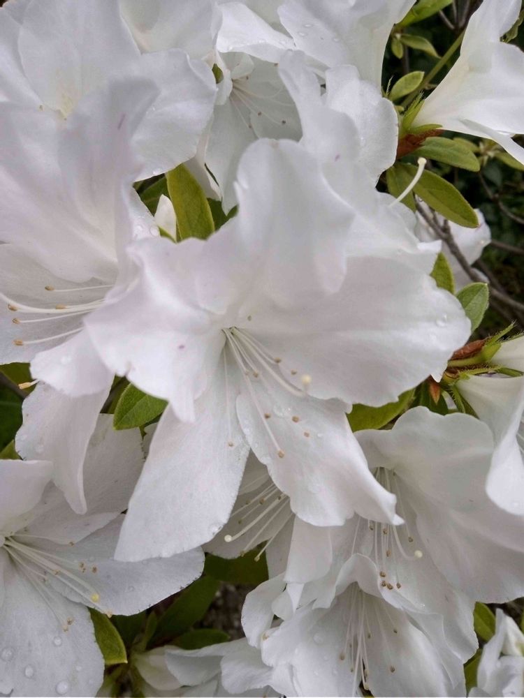 五月晴れの空に、白いアザレアが綺麗に咲いていました。