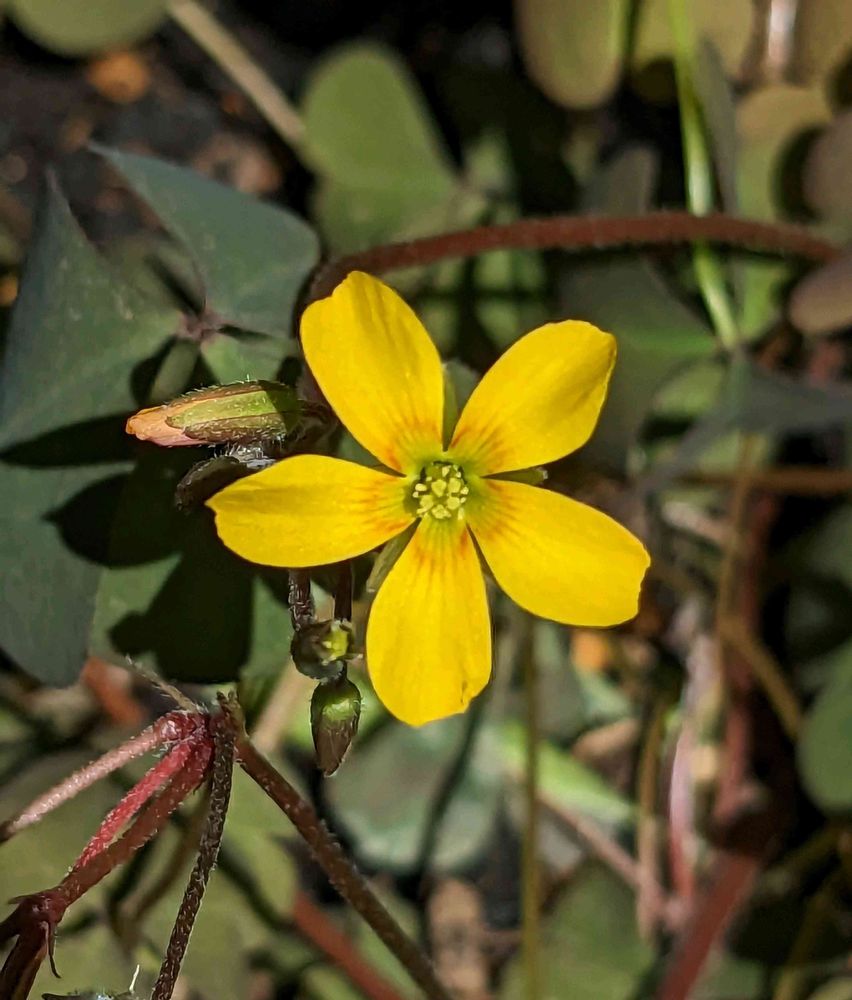昨日、カタバミと思って投稿しましたが、今日花の真ん中に赤っぽい色があるのに気がつきました
