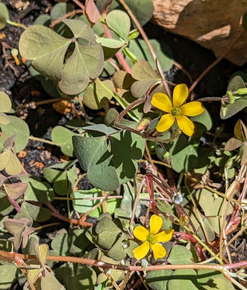 カタバミとアカカタバミの中間でウスアカカタバミなるものがあるみたいですよ。