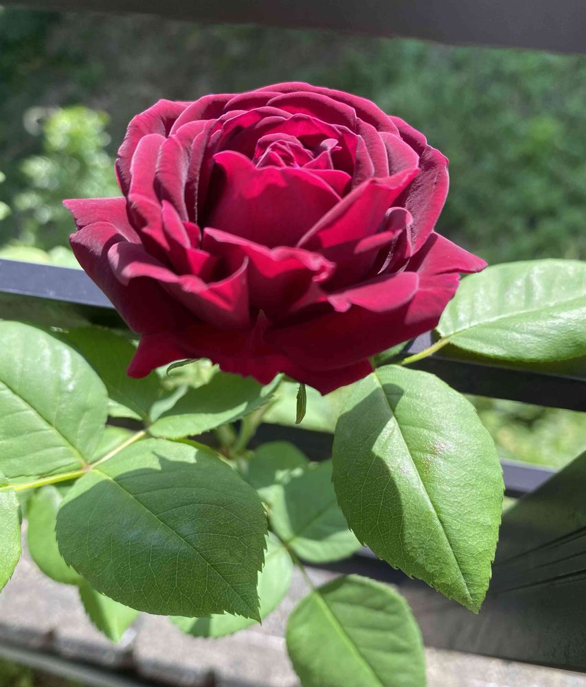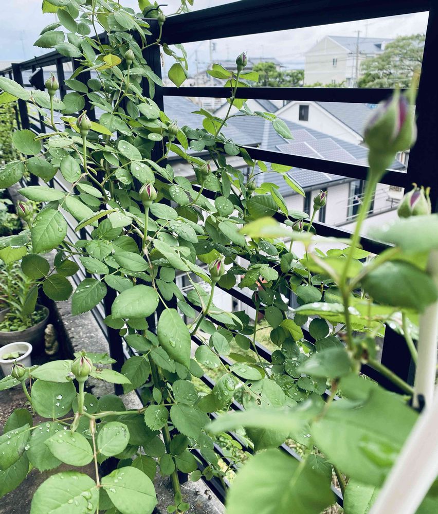 昨年新苗でお迎えし、350kmの距離を手持ちで連れて来て誘引した甲斐あり、たくさん花芽つけてくれました。ベルベットのような質感、花のサイズ感といい、シックで格好いい。