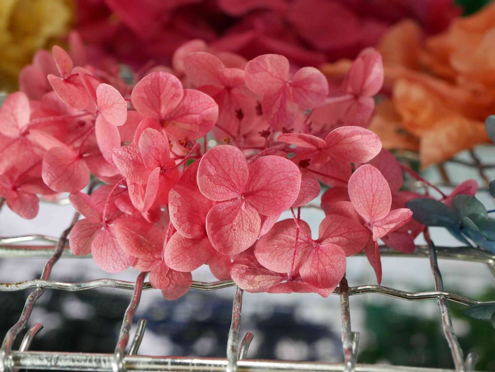 自作のプリザーブドフラワー、アナベル。 ワインカラーで染めたけど、淡い赤に成りました。