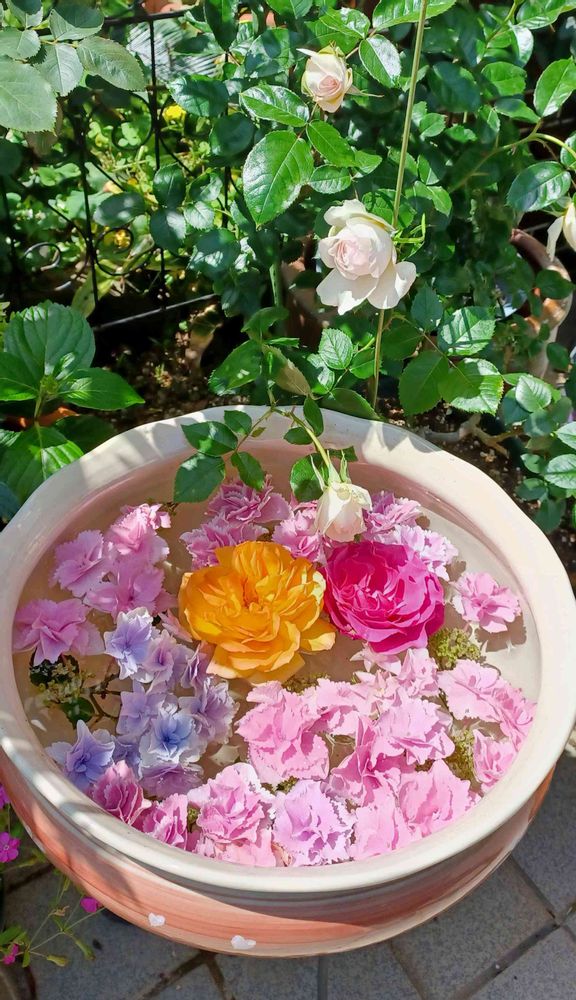 夕べ、友人がたくさんの素焼きの鉢と☝️水盤を持ってきてくれたので~
