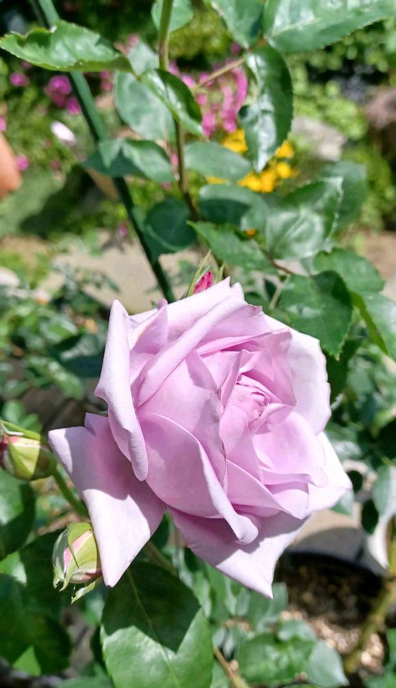 ☝️…ボレロの下にアジサイ(友達からのプレゼント)と🌹を浮かせた水盤~ブルーフォーユー~夜来香