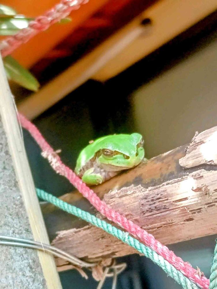 カエルちゃんが早速昼寝してるわ😍昨年は最高五匹くらい並んで昼寝してたもんなぁ😆
