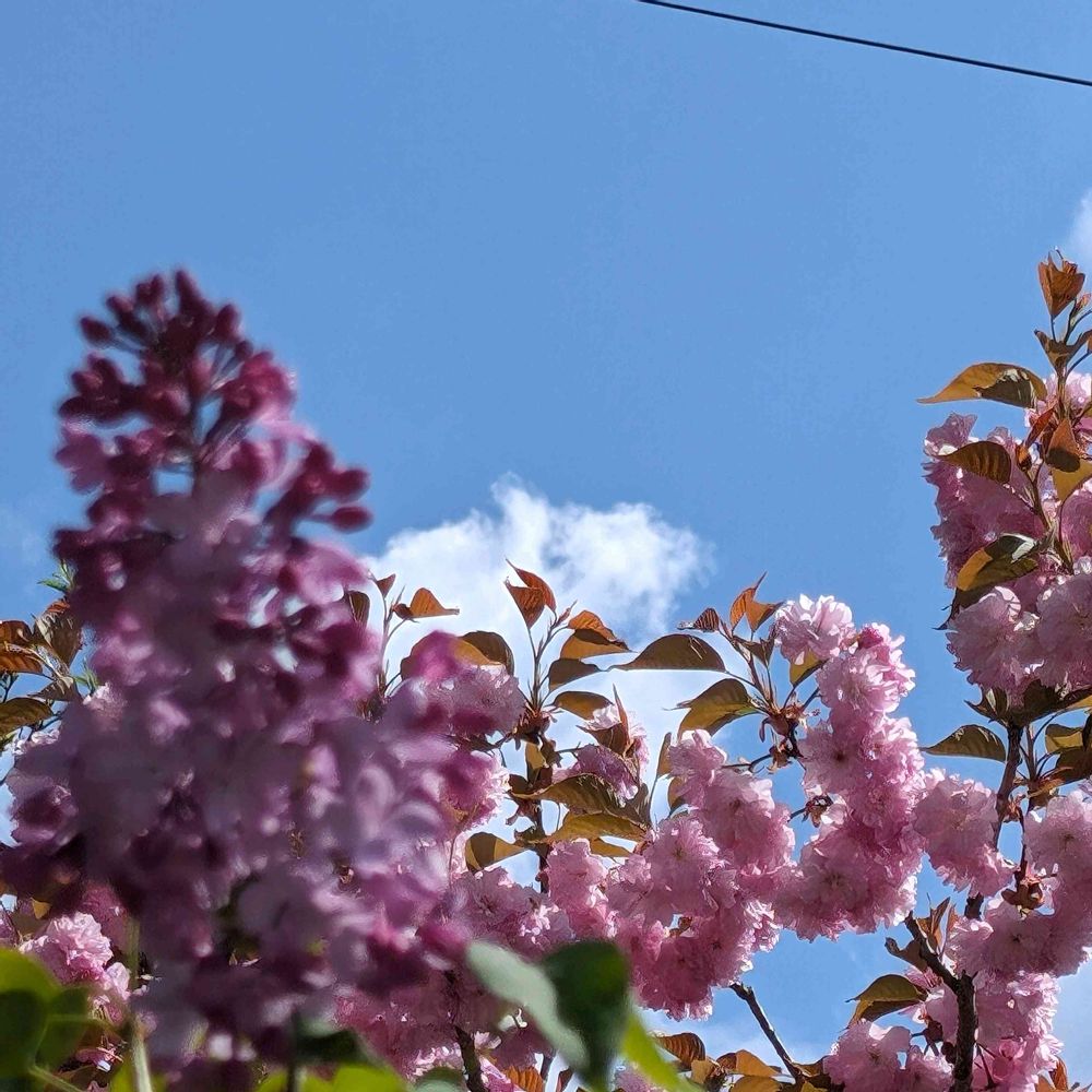満開の八重桜とライラックの共演素敵ですね🌸澄んだ空気感も写真から伝わってきました🍀