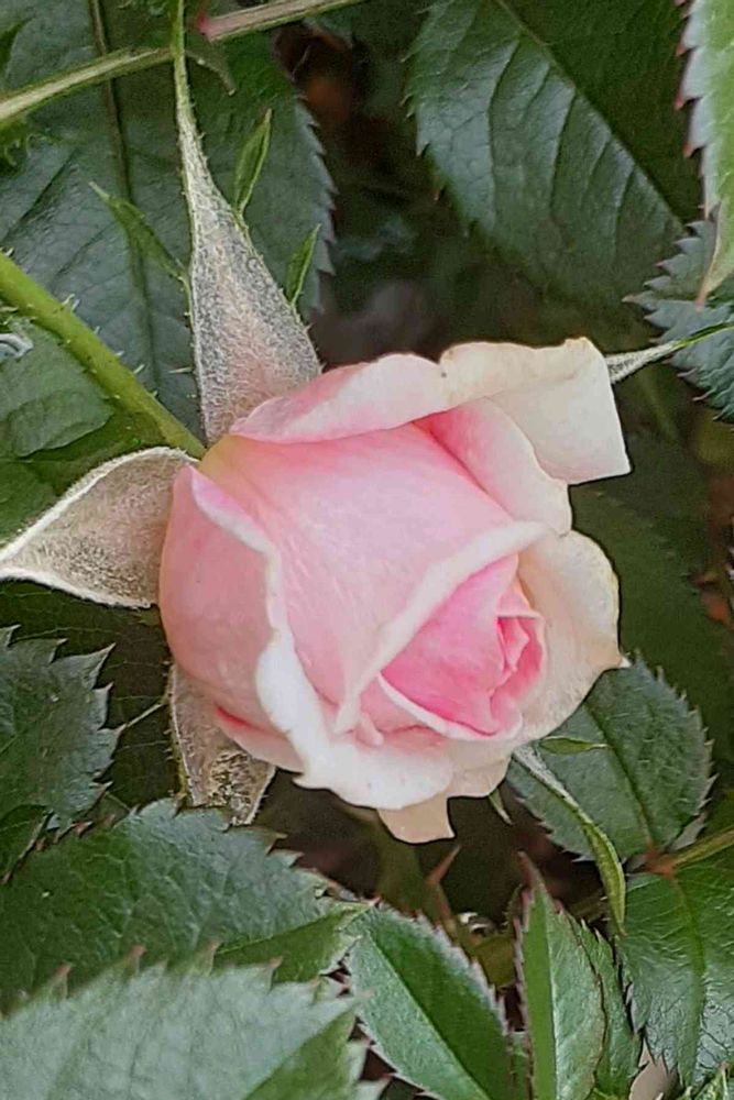 シロから淡いピンクに変わったミニバラ🩷🎶
