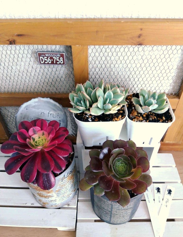 たくさんのアエオニウムの中から、迷いに迷って選んだ2つと、手の届きそうなお値段の錦1つをお迎え
