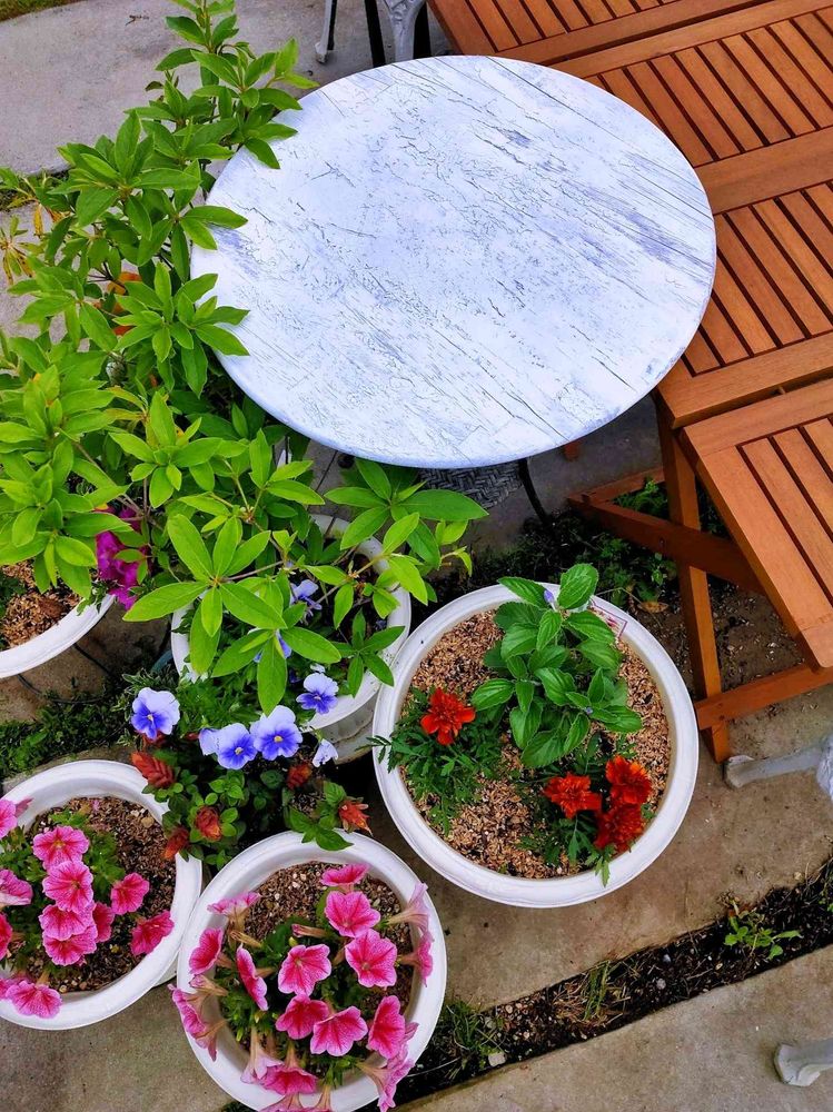 塗装が剥がれてひび割れたところにオレンジ色の粘菌がびっしり付いて見た目がよろしくないので、金だわしで軽く擦ってラッカーで白くリペイント。主に花台として使うので超適当です。鉄の足が折れるまでは、今後も補修したり塗り直したりして大事に使いますw