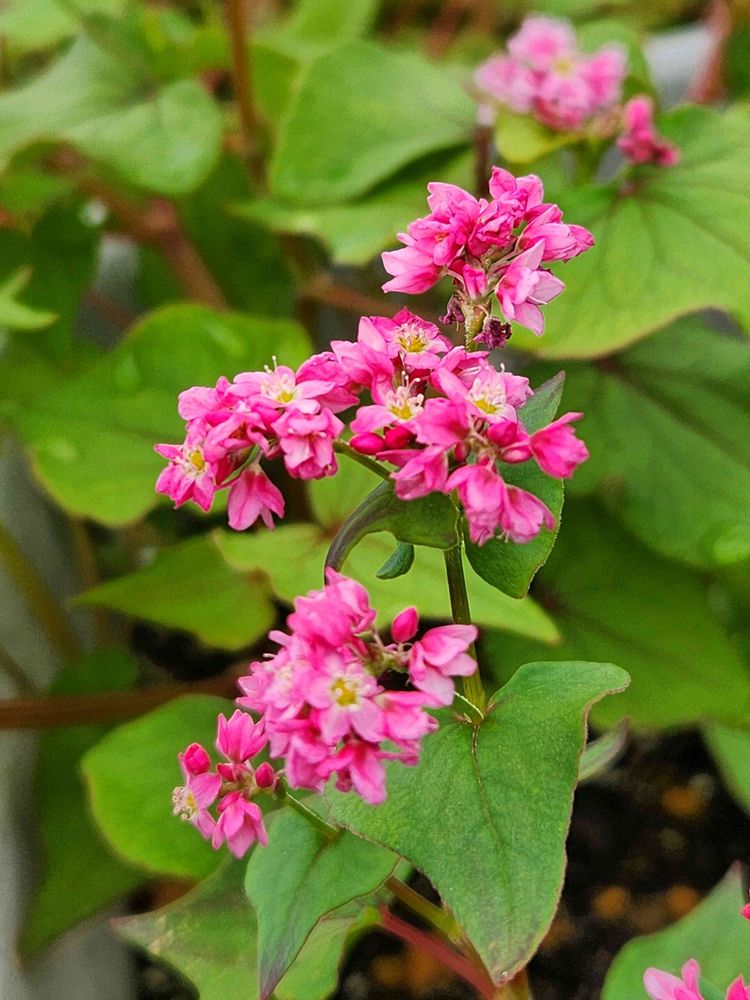 赤蕎麦ですが、思ったより丈夫で他のプランターや排水口の僅かな土の上にも生えてきていますよ~🤭