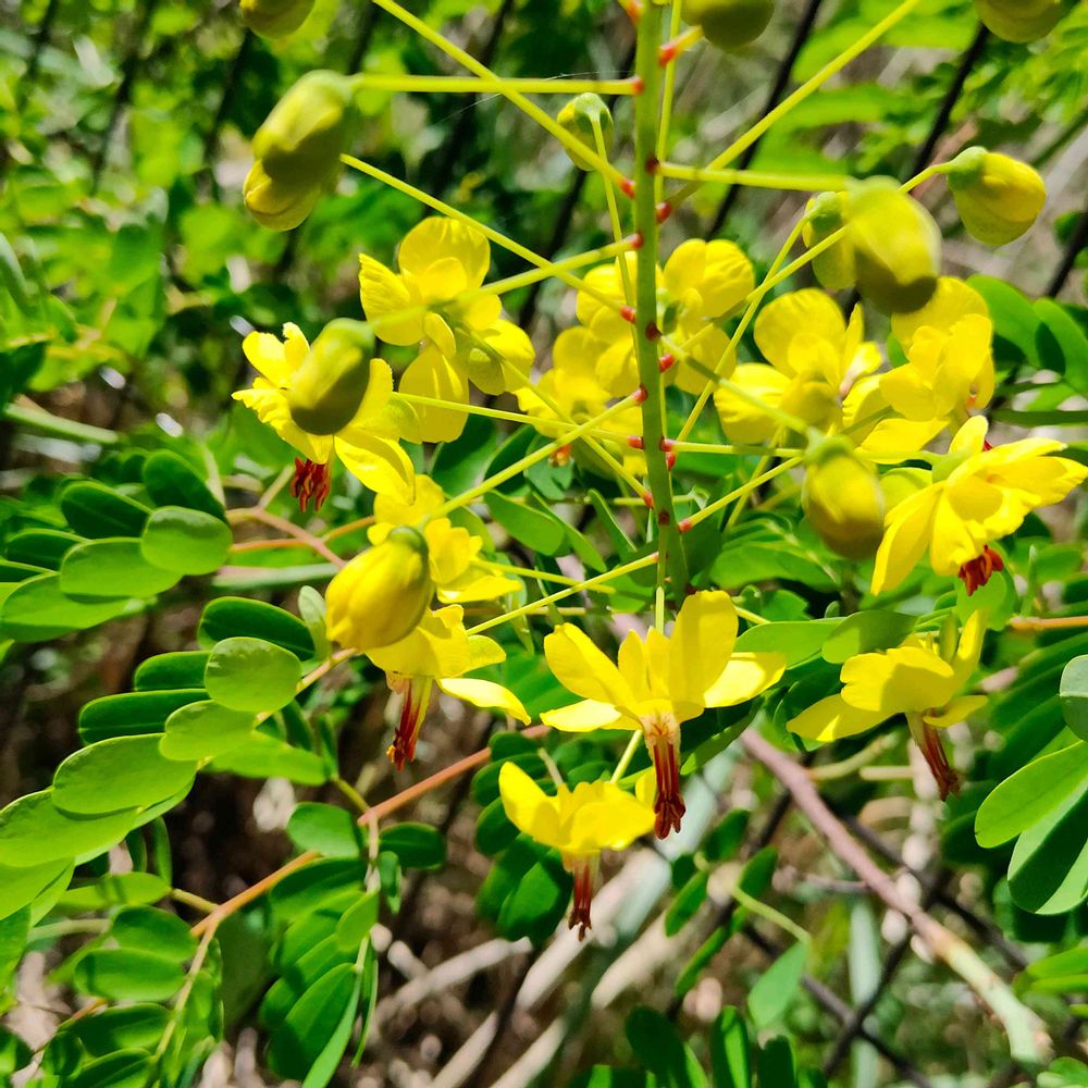 我が山に凄まじい勢いで増えている 重機で踏み倒しても尚 黄色の花を咲かせている遠くに見えるのはエンジュかも キャンプ場への夢は遠い