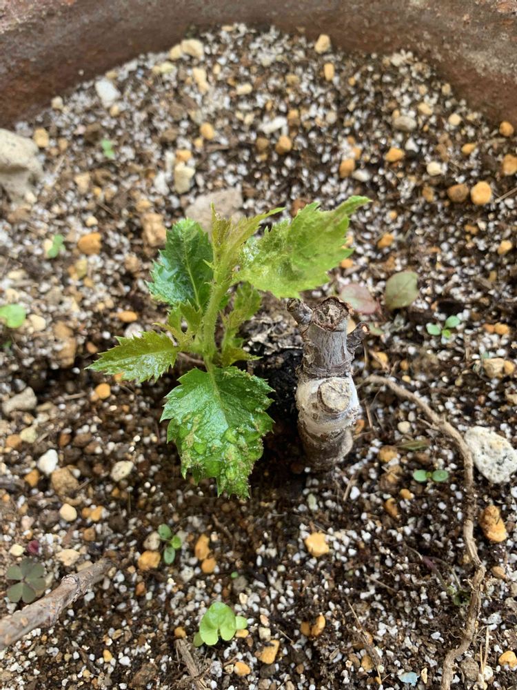 猫ちゃんが鉢を倒して折れたんですが新芽が出てきて感動しました。