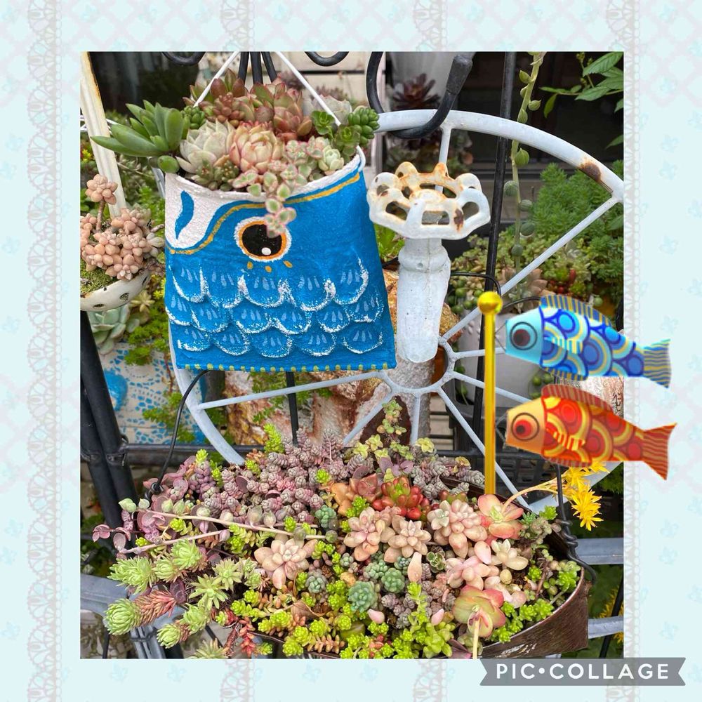 ②haruちゃんにもらった鯉のぼり🎏缶にトト様じゃぁない子たちのチビッ子寄せ植え💕
