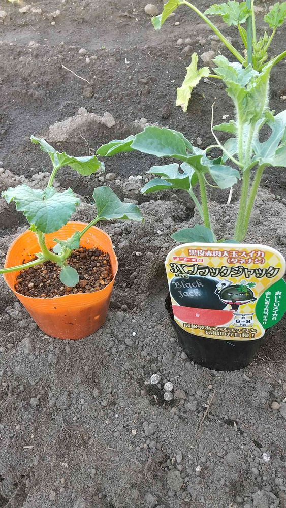 食べるスピードに実るのが追い付かないと困るので小玉スイカに続き大玉スイカも植えましたよ🤭