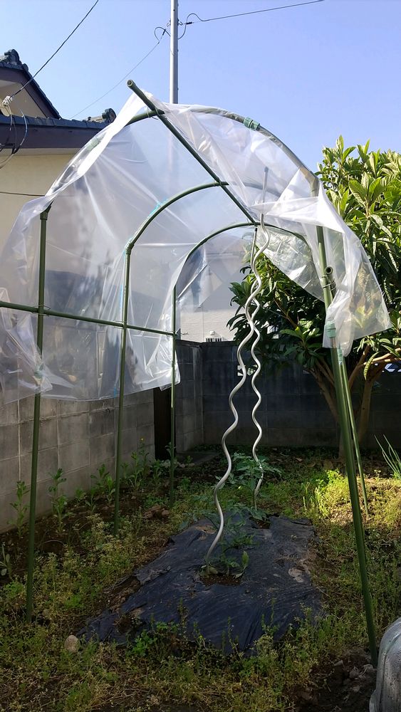 2️⃣中玉トマトちゃんにビニールハウス作りました😅