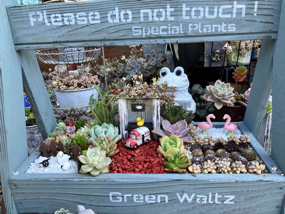 小さなガーデンとなりのハルさんの畑deマルシェでゲットした、wond boxさんの素敵な作品に寄せ植えしてみたよ!