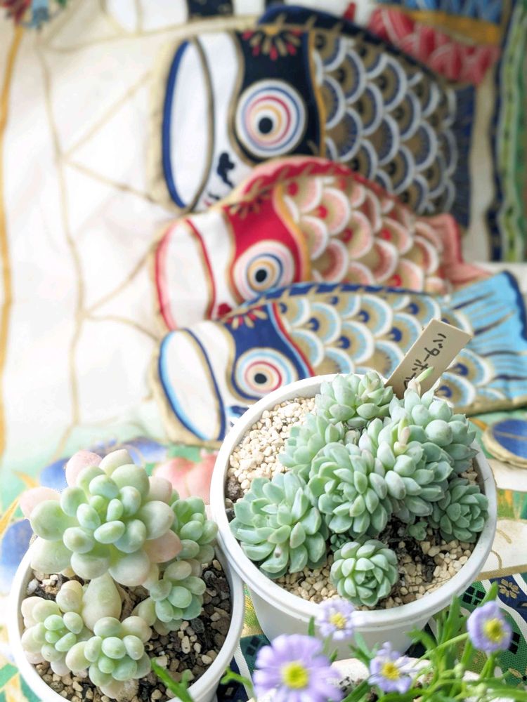 鯉のぼり🎏も可愛いし〜緑の爽やかな多肉さん達もよく似合ってるよ🤗💓