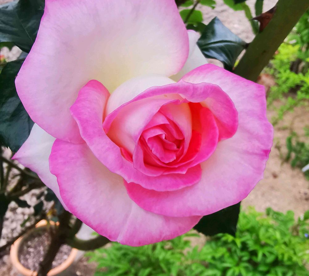 こんなピンクの縁取りのある薔薇が一気に咲き始めたんですね〜