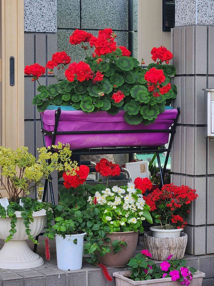 外出先の民家の玄関前、雨に撃たれないからかモリモリと咲いて綺麗でした✨️💖