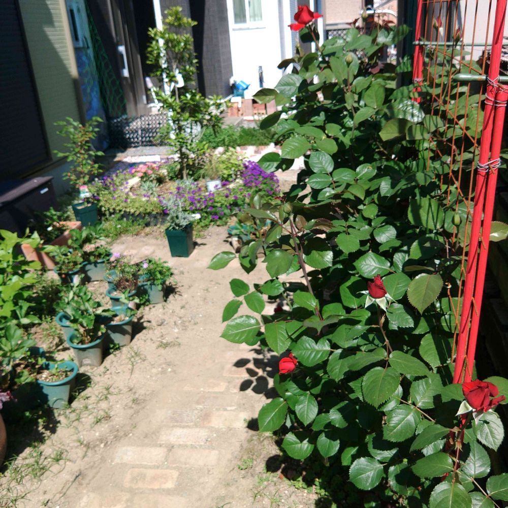 初バラ3株の内、2株も開花し始めました。クリードも香りが良い。