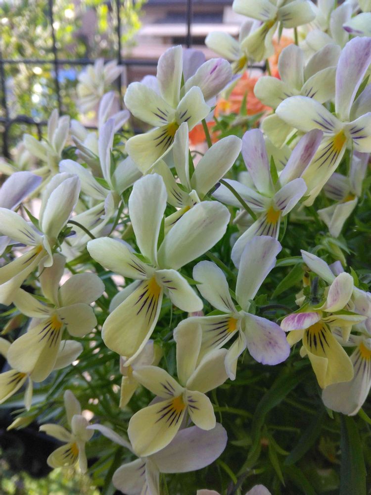 ビオラ 頑張ってますね✨うちのビオラ すぐに 水切れして うなだれてしまうから 抜こうかな?って 思いつつ水やりしたら また シャキーンってなるから 抜けないでいます。