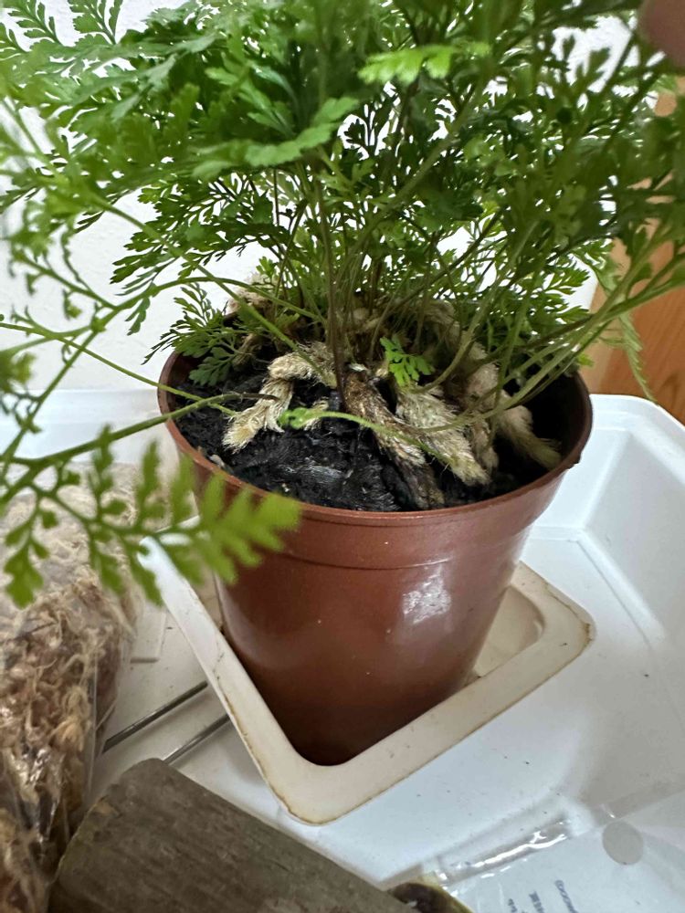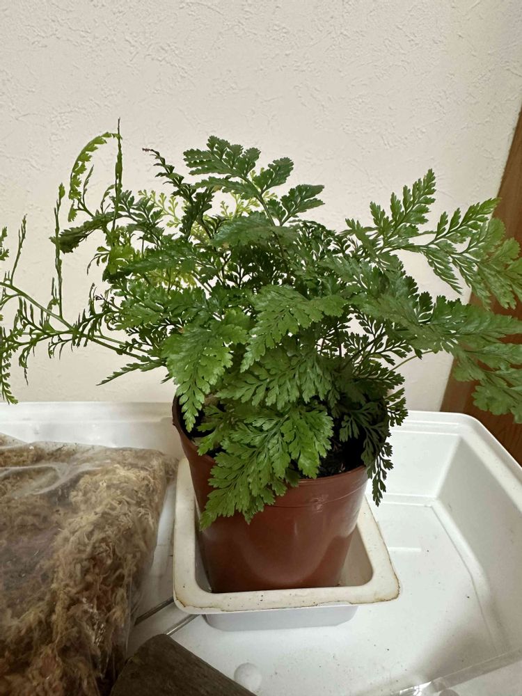 今日は、ダイソーで買ったトキワシノブを、これまたダイソーで買った昆虫の上り木で釣しのぶ風にして見ようと思います。
