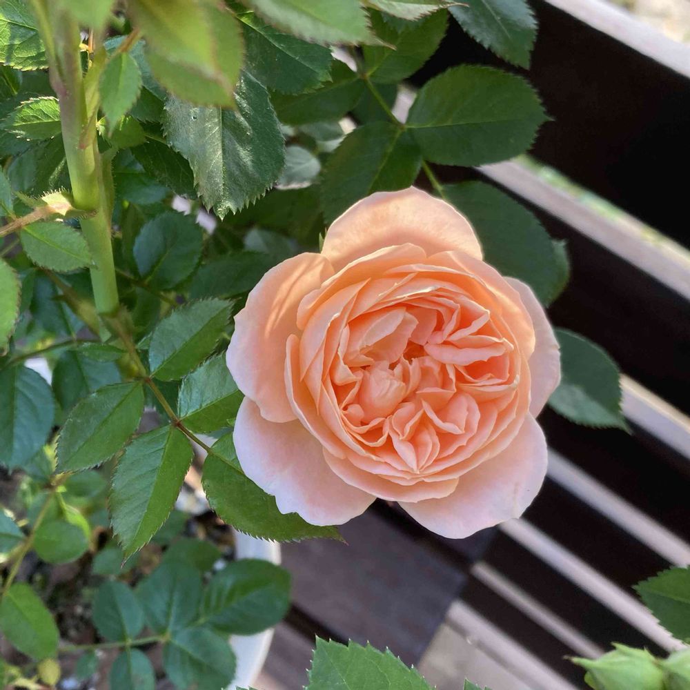 他の薔薇は鉢で、ほとんどウッドデッキに並べてあります。その前に今は星空マムやブラキカムがいたり、少しだけ軒下があるので