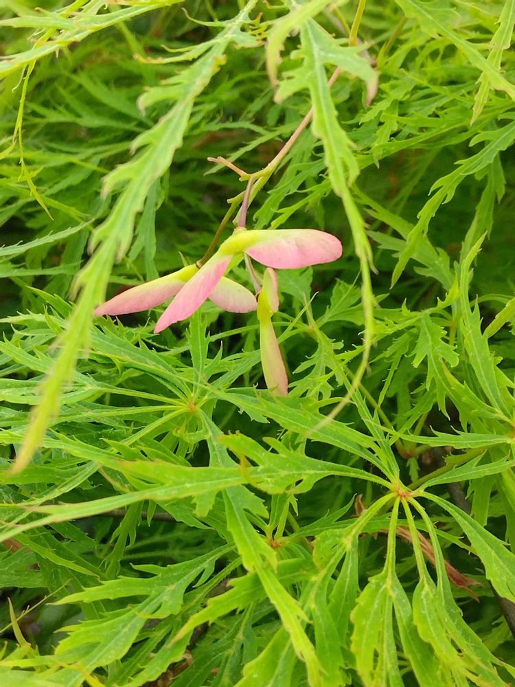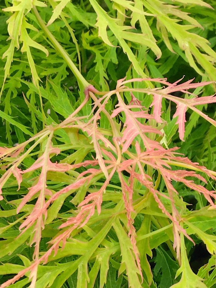 垂れモミジの緑💚🌿中に色付き🍁が見えました