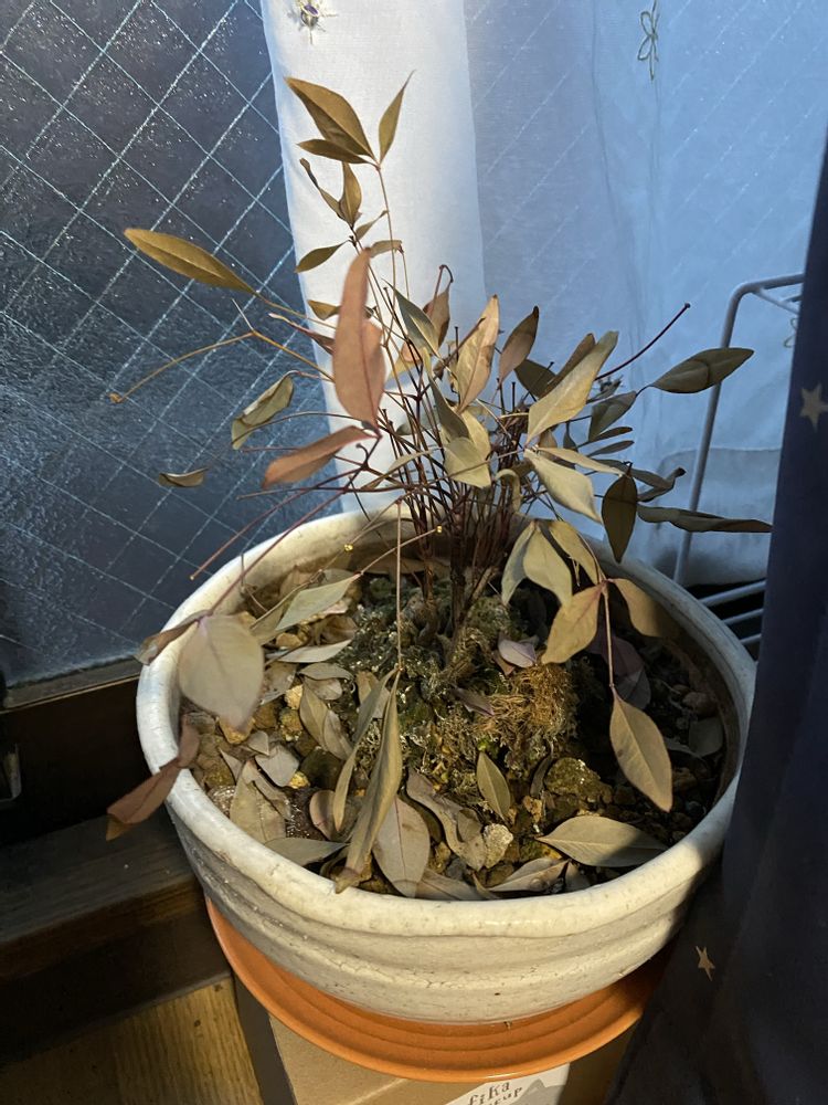 秋から冬の間の水やり頻度を雨の日に合わせ出たせいかなー??植木鉢での南天の難しさを感じました。