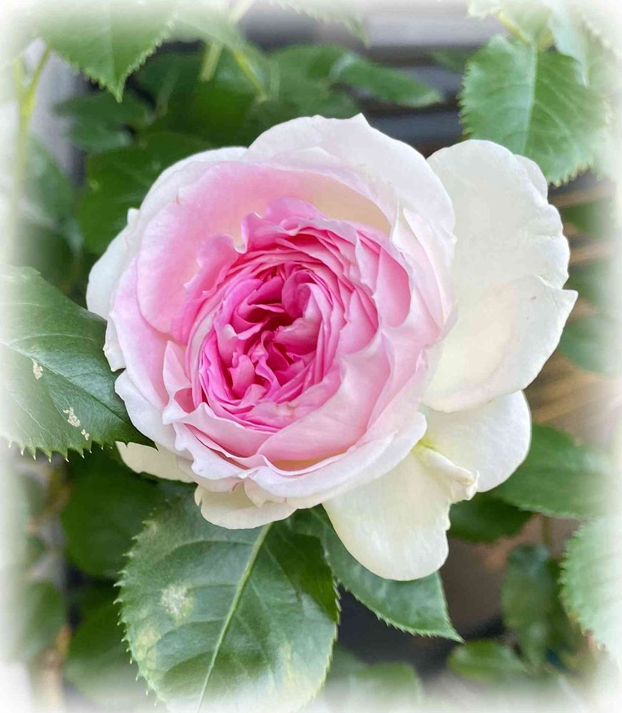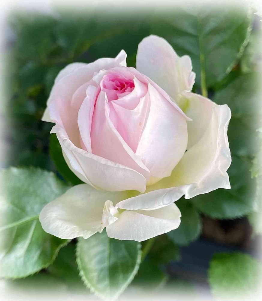 外側の花弁は白く、花芯は淡いピンクの中輪カップ咲きで、フルーツとフローラルの香り(*´꒳`*)