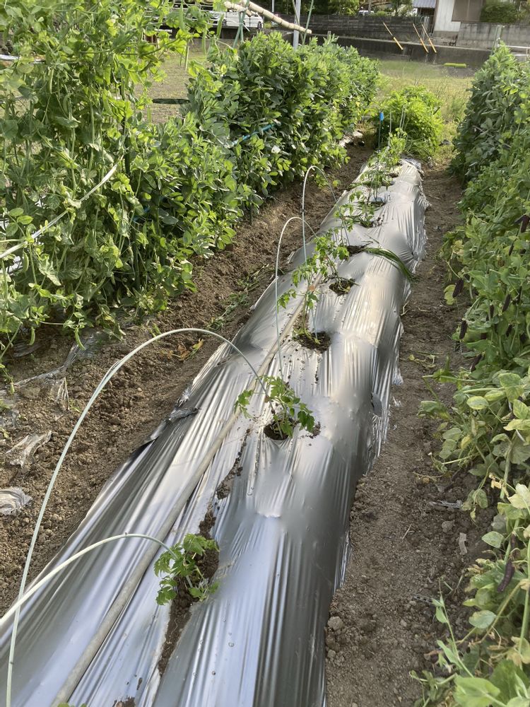 今年の調理用トマト主力、早生だるま12本の定植を完了しました。