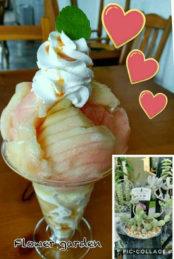 このタップリな🍑パフェ600円だって〜🍑農家直営だから出来る事ですよね〜💖