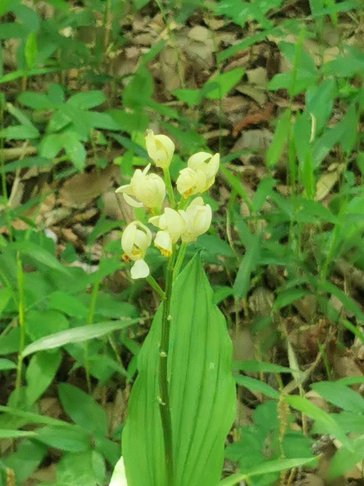 キンランも開花してから日数がたつと色が抜けてくることがあります、下の花から抜けるとミックスみたいになります。また最初からシロバナの場合もありますが、ギンランのような真っ白さではないですが、これはこれで珍しいものを見たと思ってください。