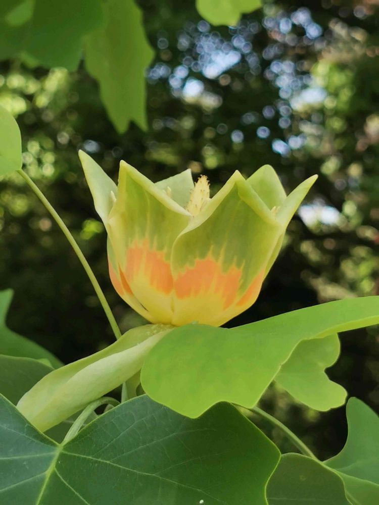ユリノキの花、大木にたくさん咲いていました。ボランティアのお年寄りが観光客に説明してました。🌳