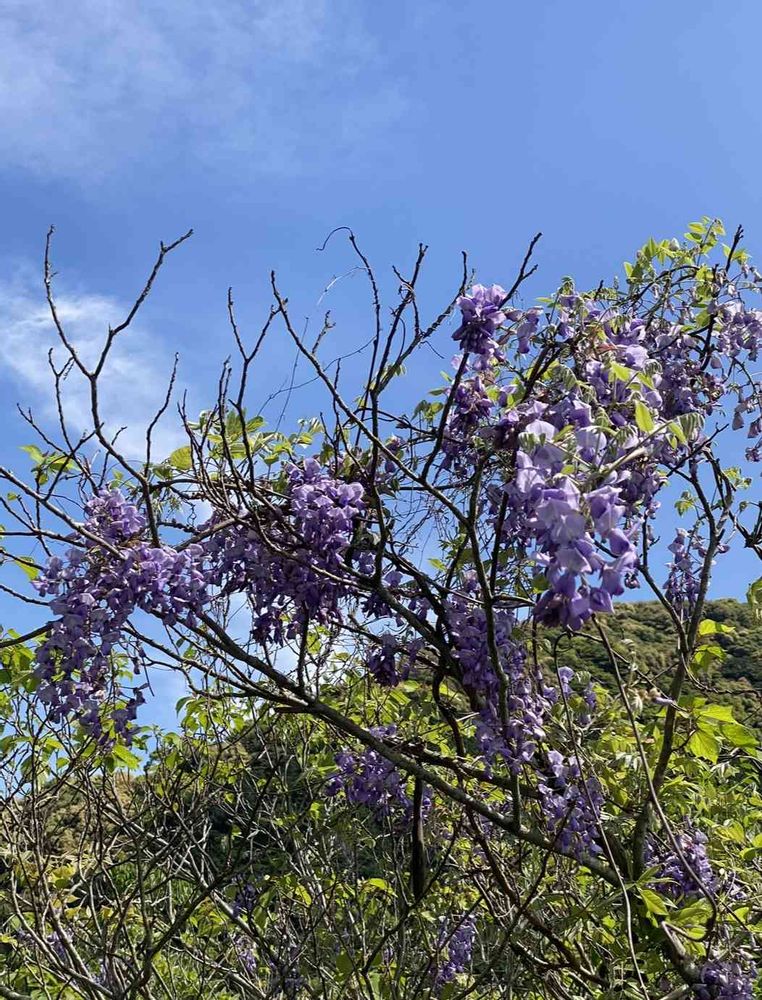4枚目は、「花の木トンネル」を抜けた山の中に咲いていたフジの花。山藤でしょうか☺️
