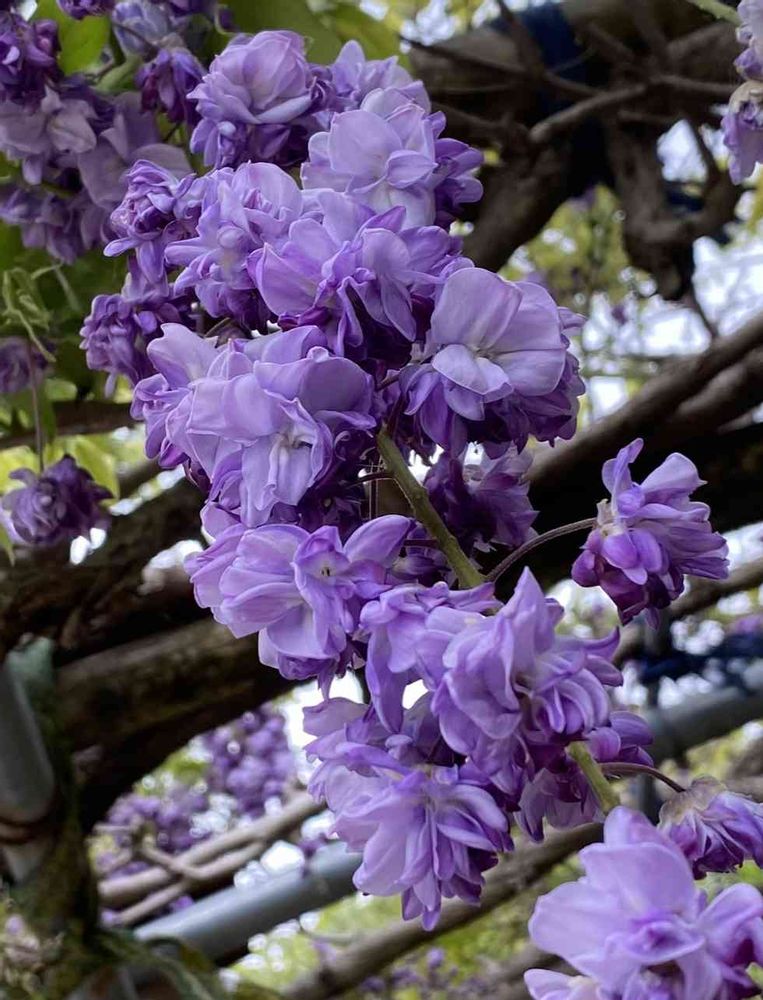5枚目は、まるまるポンポン咲きがかわいい、八重黒龍藤💜
