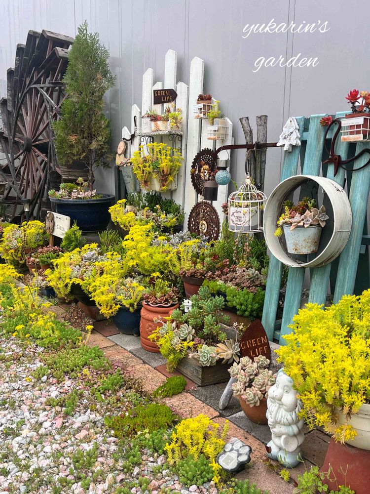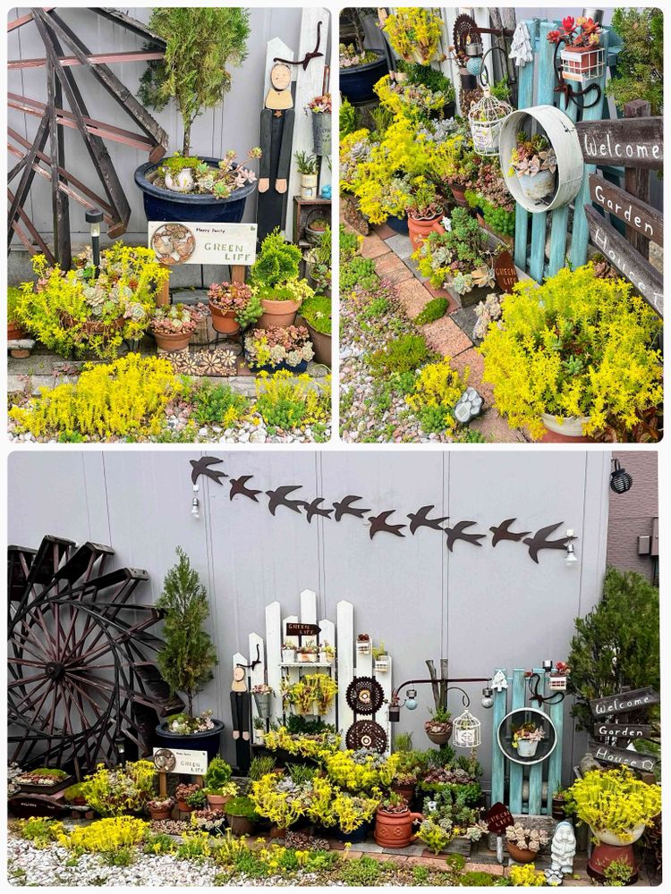 ガレージの壁ぎわGardenもセダムの花で真っ黄っ黄💛✨
