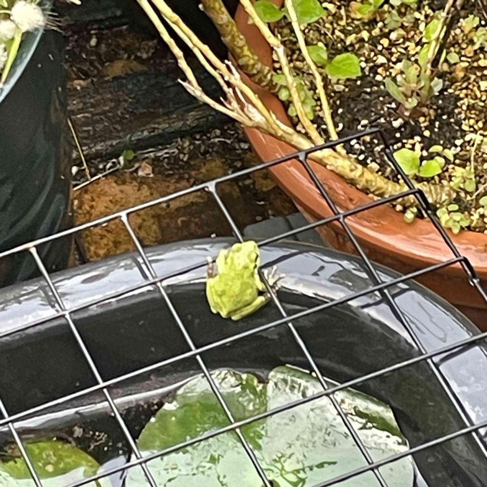 メダカ槽の睡蓮の上で寛ぐ🐸と
