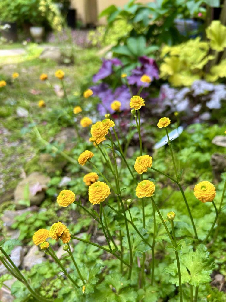 ヒューケラとゴールドコインがいい感じです。ゴールドコインは、初めて見たのです。花が揺れて可愛いよね。💛💛💛💛💛
