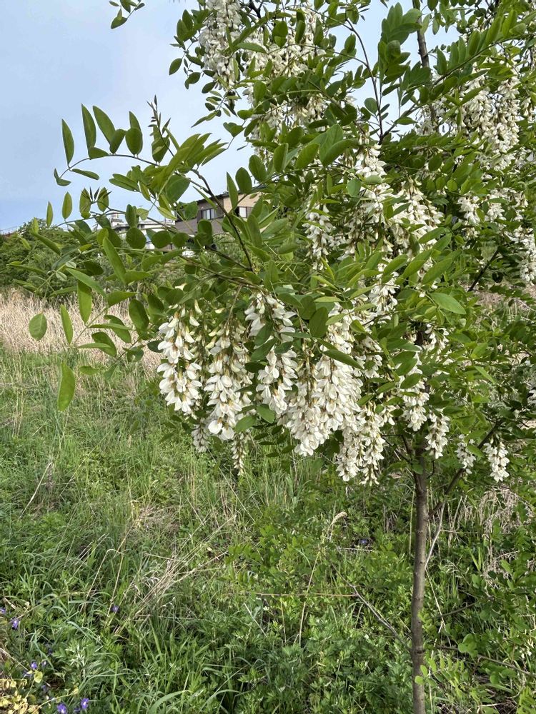 ニセアカシア、よく河川敷とかで大木になってるのよく見ますがお花が高いところで咲くので遠くて。今回間近な写真見せていただけて嬉しかったですよ。こんなに小さな木でも花を咲かせるんですね~😆