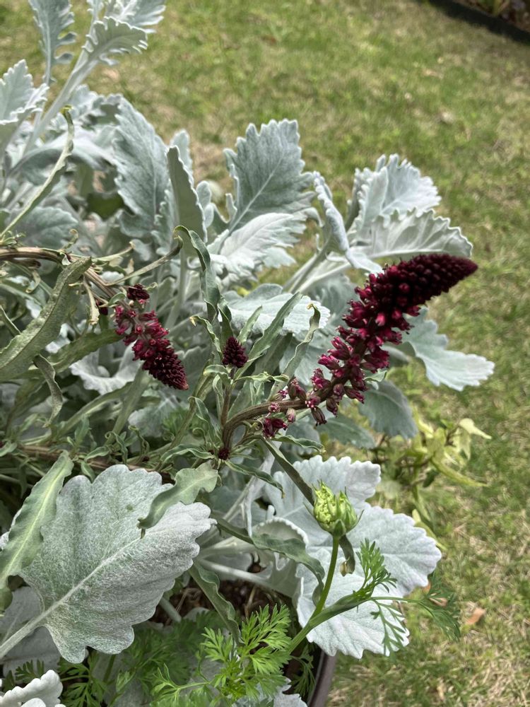 どちらも銀葉とワイン色のお花🍷があってますね♬☺️♬